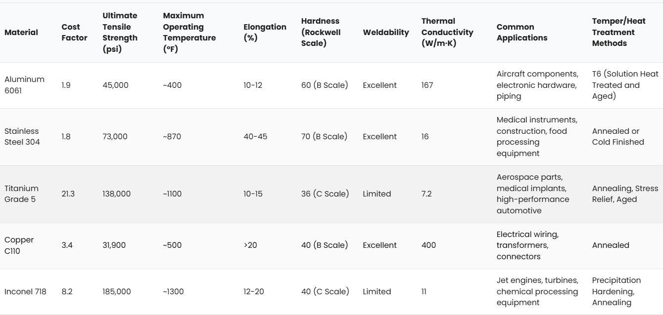 Compare Materials for Turning